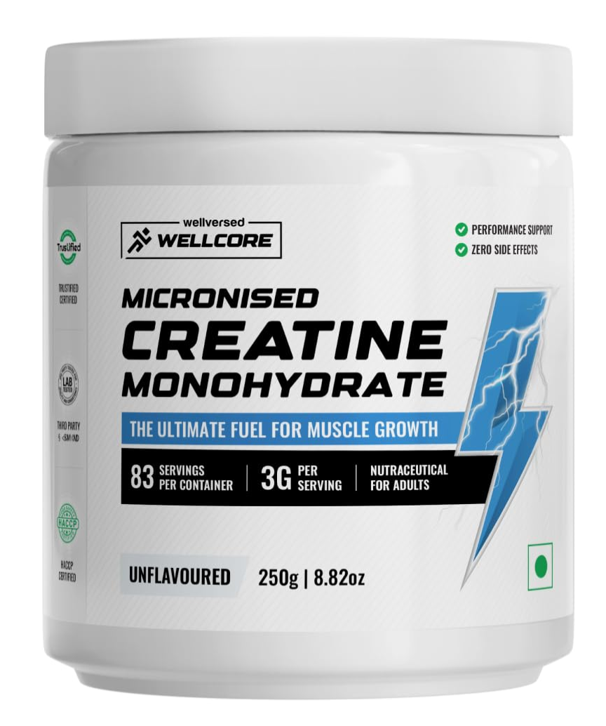 Wellcore Creatine 250gm is a premium workout supplement crafted to boost athletic performance, muscle strength, and endurance. Made with 100% pure creatine monohydrate, one of the most trusted compounds in the fitness industry, this supplement empowers athletes, bodybuilders, and fitness enthusiasts to push their limits, recover faster, and reach fitness goals more effectively. Wellversed, the brand behind Wellcore, dedicates itself to the mission of Maximizing Human Potential. Through cutting-edge research and an in-depth understanding of human biology, Wellversed creates transformative nutritional products.